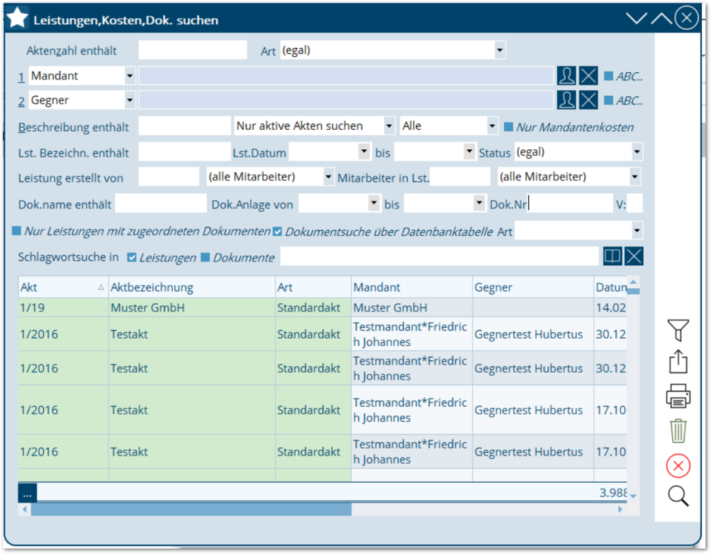 als auch über die Dokumentnummer durchführen. Es werden sodann alle Akten mit den eingegebenen