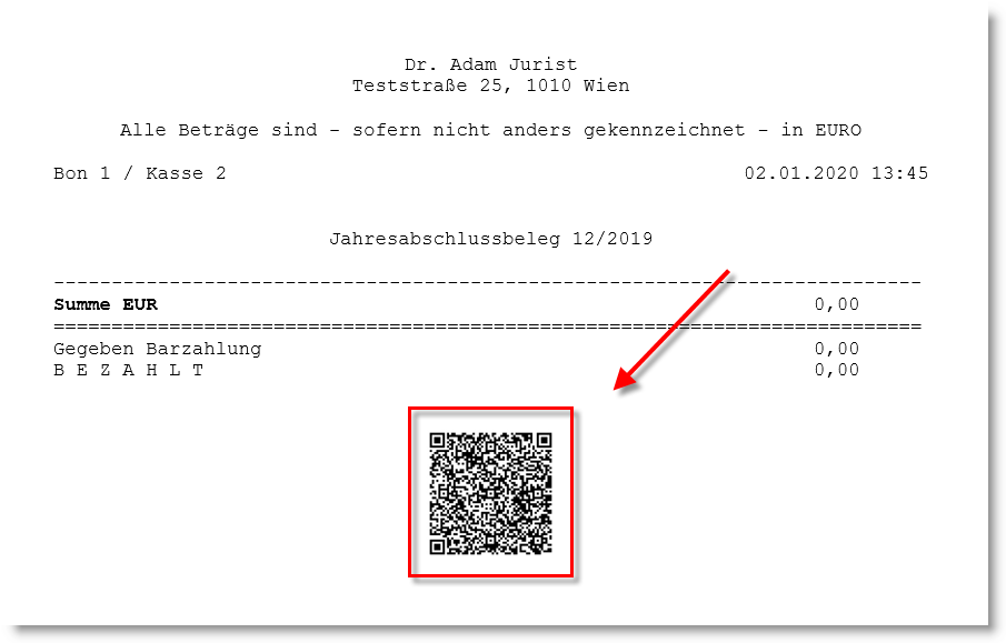 Der Code wird benötigt, damit der Jahresabschlussbeleg nur von Ihrem Belegcheck aus lesbar