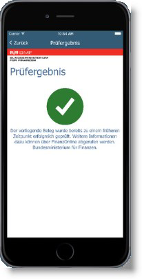 • Zunächst benötigen Sie wieder das Prüf-App vom Finanzamt auf Ihrem Smartphone mit einem