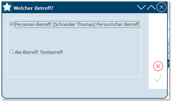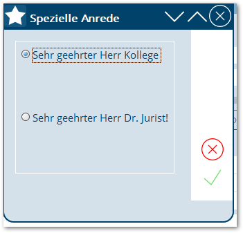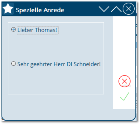 Auch in diesem Bereich ist selbstverständlich die Abfrage-Funktion der persönlichen Anrede und des Akt-/Personenbetreffs integriert.