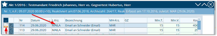 Mails direkt in Akt verspeichern / Leistung zum E-Mail erfassen