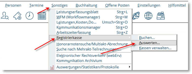 Sonstiges/Registrierkasse/Auswerten