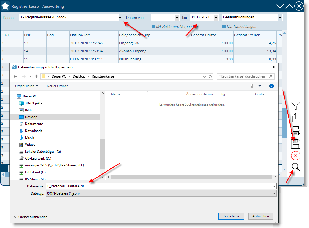 Quartalweise Sicherung der Registrierkasse