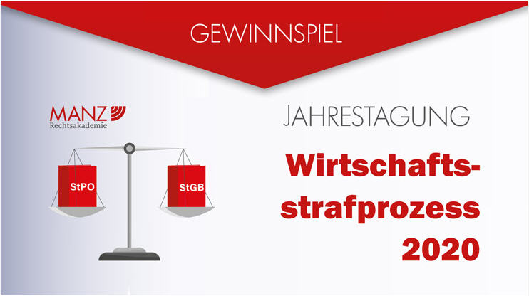 Gewinnen Sie jetzt Ihr Webinar-Ticket für die MANZ Jahrestagung Wirtschaftsstrafprozess 2020 am 10.12.2020 im Wert von EUR 450,-. Einfach am Gewinnspiel teilnehmen und mit etwas Glück ein GRATIS Webinar-Ticket für die Online-Tagung gewinnen!